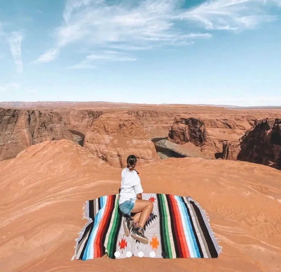 50% Acrylic, 40% Polyester, 10% Cotton Machine washable Handmade in Mexico. Great for use as a yoga blanket, picnic blanket, beach blanket, camping blanket, or as a home throw to snuggle up with. Mexican Diamond blankets are sometimes referred to as “Aztec blankets”, “Navajo Blankets”, or “Indian blankets” because they feature a traditional center diamond design and rich colored stripes. These Baja Blankets are our thickest and most heavy weight.