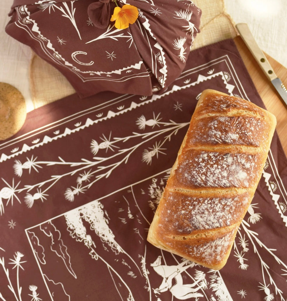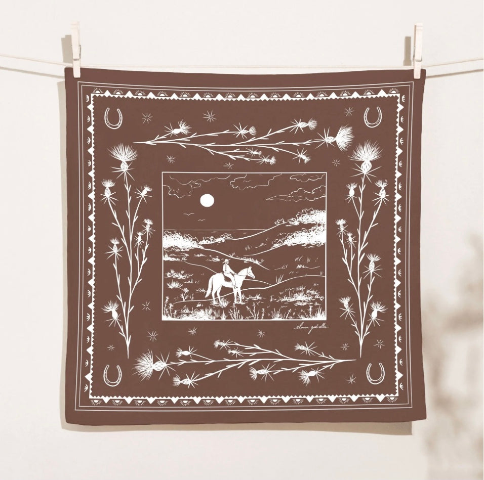 This screen-printed bandana is perfect for carrying as an everyday keepsake. Wear it around your neck or in your hair, wrap up snacks and gifts, hang it as a tapestry, and so much more. Bandanas are incredibly versatile and have been worn and used functionally for generations by sailors and seafarers, farmers and cowgirls. Ethically made with 100% cotton and earth-friendly ink, this beautiful and durable textile is a staple of the contemporary wardrobe and makes a wonderful gift.